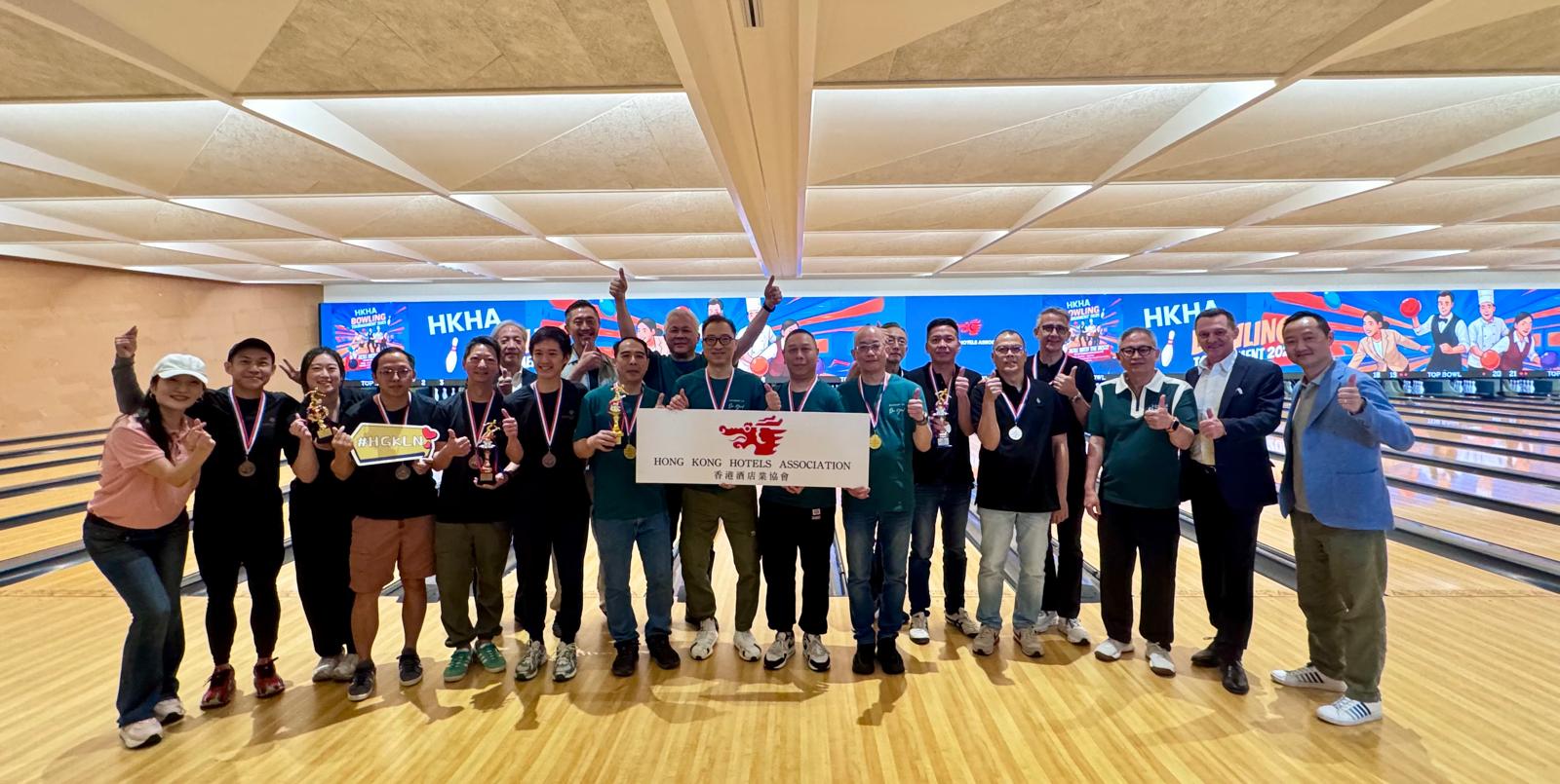 本会今天在启德Top Bowl保龄球场举办业界保龄球锦标赛,是次赛事共有34间酒店参与。经过一轮激烈比赛后,结果如下︰
